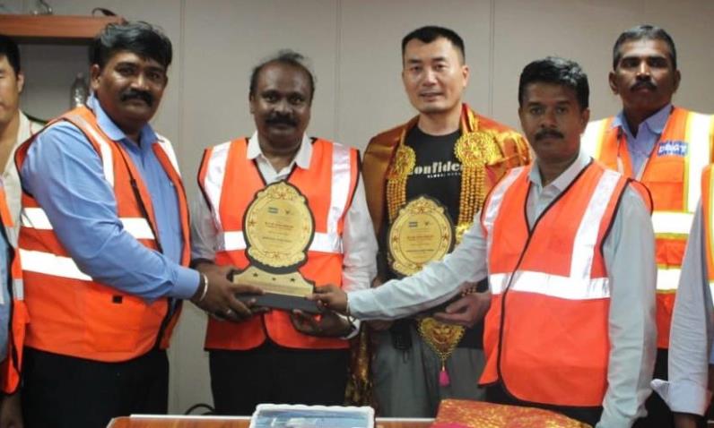 Mr. R Maneksha Fernando, Chief Operating Officer and team DBGT warmly hosted an onboard function with cake cutting ceremony and presented the terminal’s memento to celebrate the start of a new and long-standing relationship. Special guests Mr. Sagayaraj Fernando, Branch Manager, M/s X Press Feeders and Mr. Ganesh Kumar, Operations Manager, M/s MSC, Tuticorin, were also honored during the ceremony.