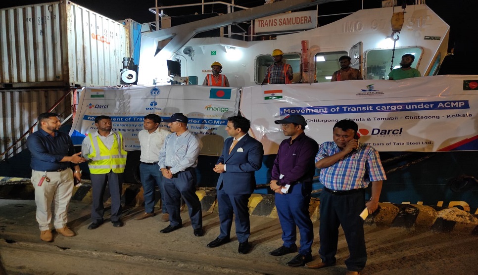 The trial run is being undertaken by Tata Steel and CJ Darcl Logistics Ltd. on the route Chattogram-Sheola-Sutarkandi.