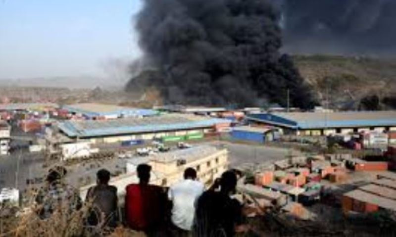 Thick smoke was seen rising from the logistics facility as local authorities and fire personnel worked to prevent the flames from spreading to nearby warehouses and storage units. The cause of the fire was not immediately known, and an investigation is expected once the site is declared safe.