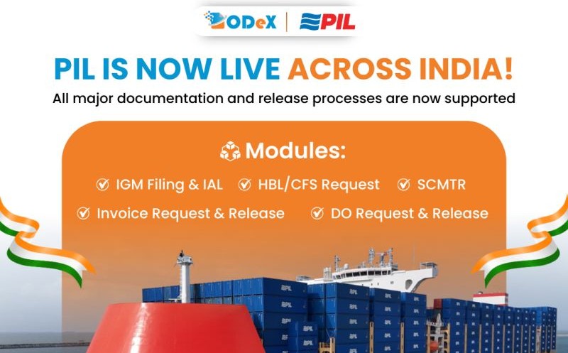ODeX has announced the nationwide activation of Pacific International Lines (PIL) on its digital platform, marking a major step forward in simplifying and accelerating EXIM processes across India.